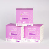 Each box of LiZZOM pads has 10 pieces. Each pack of LiZZOM liners has 20 pieces of liners.